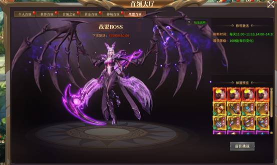 为定时活动,每日11:00-11:10、14:00-14:10,活动时间内盟主或者副盟主召唤战盟魔物,盟众参与击杀即可获得丰厚奖励。